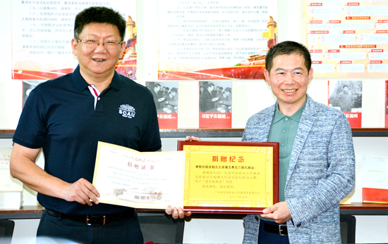 仪式上签署了“梁家勉基金”捐赠协议。咸春龙为梁力新颁发捐赠荣誉牌匾和捐赠荣誉证书。