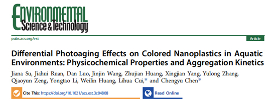 近日,我校资源环境学院环境科学与工程系崔理华教授与陈澄宇副教授团队在环境科学与生态学一区Top期刊Environmental Science & Technology(IF: 11.4)上发表了题为“Differential Photoaging Effects on Colored Nanoplastics in Aquatic Environments: Physicochemical Properties and Aggregation Kinetics” (论文链接:https://pubs.acs.org/doi/full/10.1021/acs.est.3c04808)的研究论文,并入选期刊封面。该研究是继“Aggregation Kinetics of TiO2 Nanoparticles in Human and Artificial Sweat Solutions: Effects of Particle Properties and Sweat Constituents”(论文链接https://pubs.acs.org/doi/full/10.1021/acs.est.2c05237)后在Environmental Science & Technology期刊上发表的另一篇封面文章。