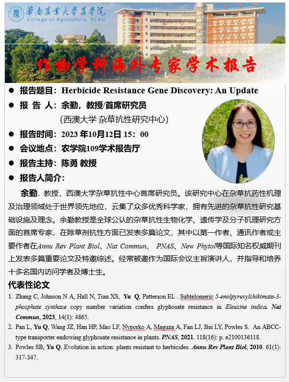 作物学科海外专家学术报告--Herbicide Resistance Gene Discovery: An Update