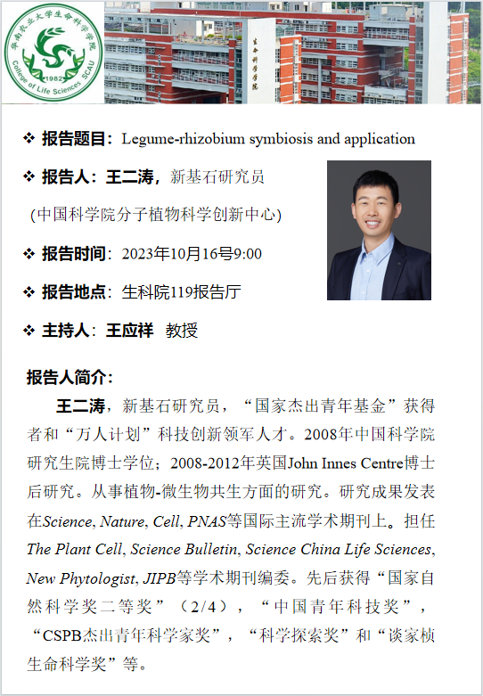 生命科学学院系列讲座论坛——Legume-rhizobium symbiosis and application