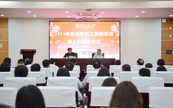 10月24日上午,学校2023年新进教职工岗前培训开班仪式暨入职宣誓仪式在行政楼三楼报告厅举行。本次培训以“躬耕教坛,强国有我”为主题,旨在引导广大新进教职工尽快熟悉和融入学校,更好履行岗位职责,推动学校事业高质量发展和“双一流”建设。校长薛红卫出席仪式并致辞。校党委副书记邓国安主持仪式。