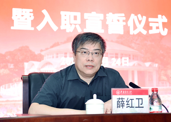 “我代表学校向新加入华农大家庭的教工表示最诚挚的欢迎和衷心的祝福!”薛红卫以“胸怀国家,情系学生,为建设农业特色世界一流大学贡献力量”为题,结合学校在推进建设农业特色世界一流大学过程中的战略要求,希望全体新进教职工认真贯彻落实党的二十大精神,深入学习贯彻习近平总书记关于教育的重要论述,保持“向上”的精神状态、“向善”的精神品质、“坚毅”的学术品质和“吃苦”的人生追求,坚持立德树人根本任务,大力弘扬教育家精神,传承和发扬丁颖精神,肩负起培根铸魂、启智润心的时代重任,奋力开拓学校“双一流”建设新局面。