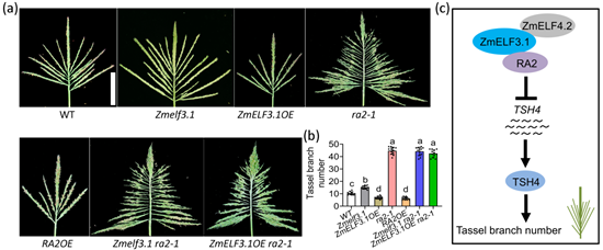 ZmELF3.1蛋白与RA2蛋白互作调控玉米雄穗的分枝数目