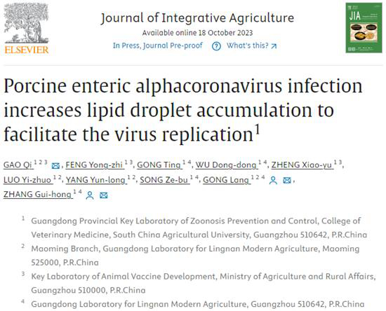 我校兽医学院博士后高琦为第一作者,张桂红教授、龚浪副教授为通讯作者。该研究获得国家自然科学基金项目、广东省自然科学基金项目、茂名实验室科研启动项目、农业部生猪产业技术体系资助。