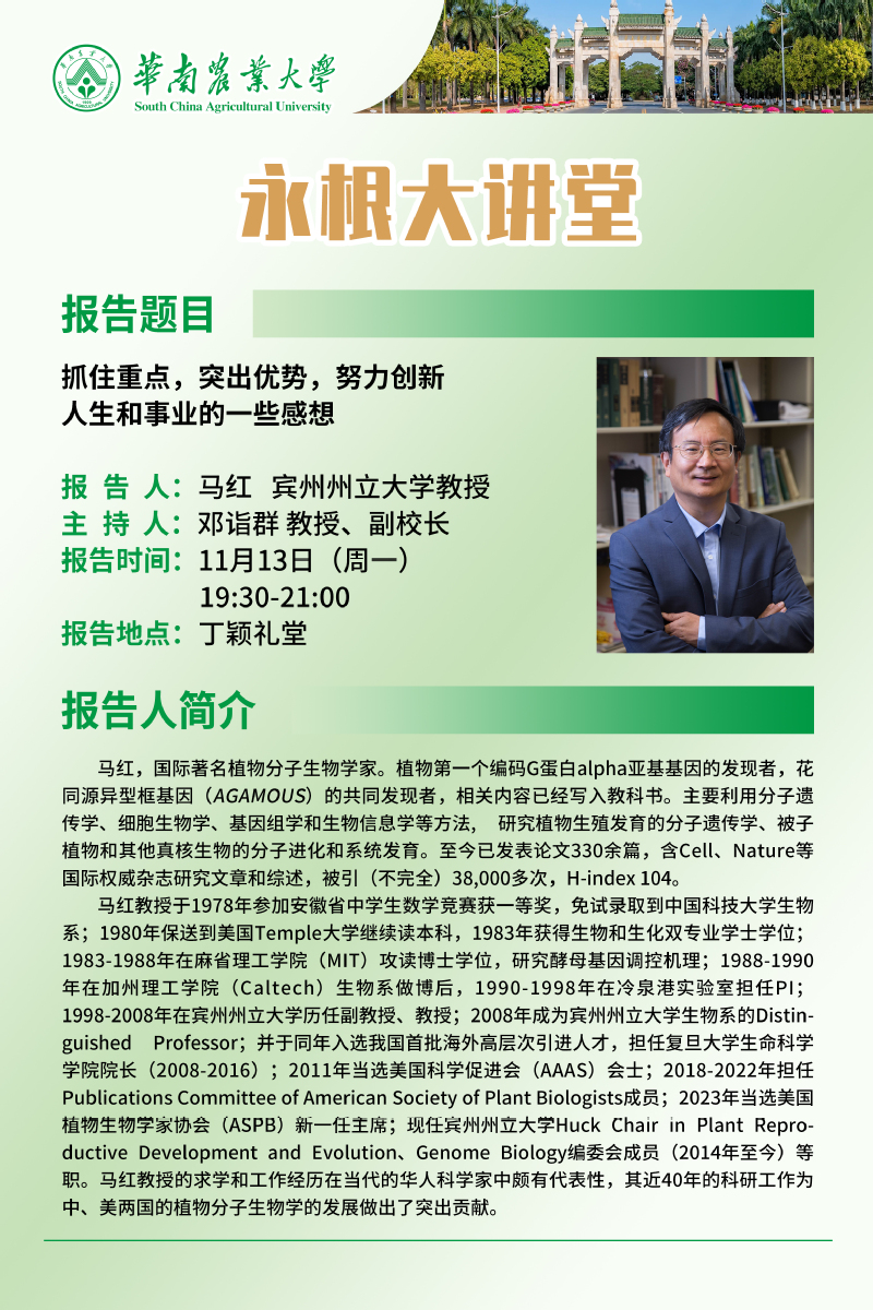 生命科学学院特邀报告——春化作用的分子与表观遗传调控机制解析