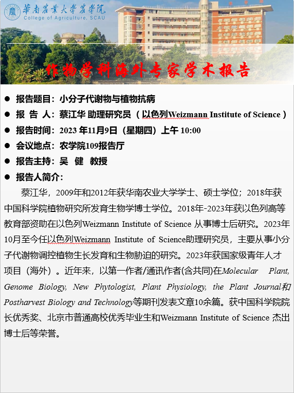 作物学科海外专家学术报告--小分子代谢物与植物抗病