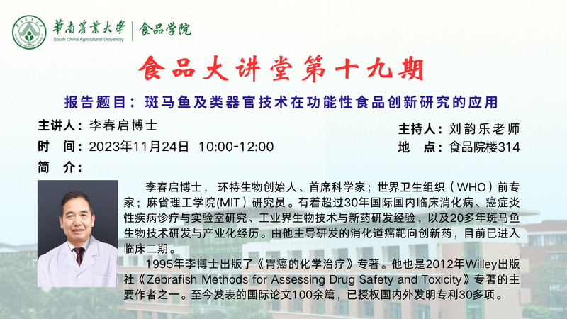 食品大讲堂第十九期:斑马鱼及类器官技术在功能性食品创新研究的应用