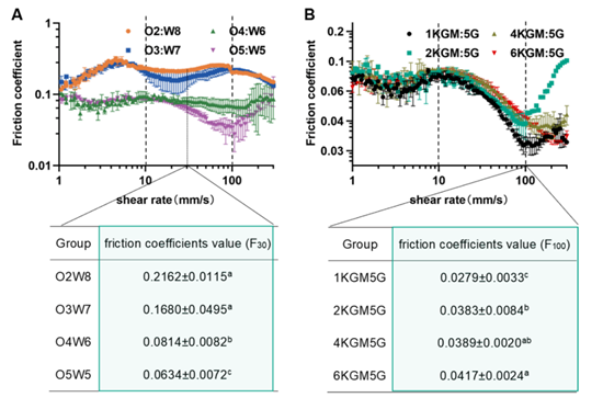 二元水凝胶比例和油水比例和对bigel口腔摩擦特性调控作用