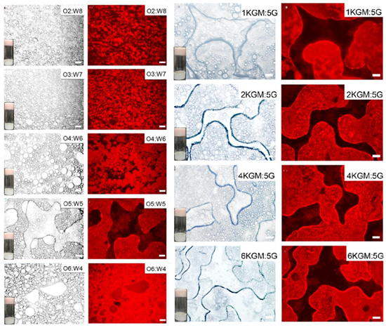 二元水凝胶比例和油水比例对bigel微观结构调控作用