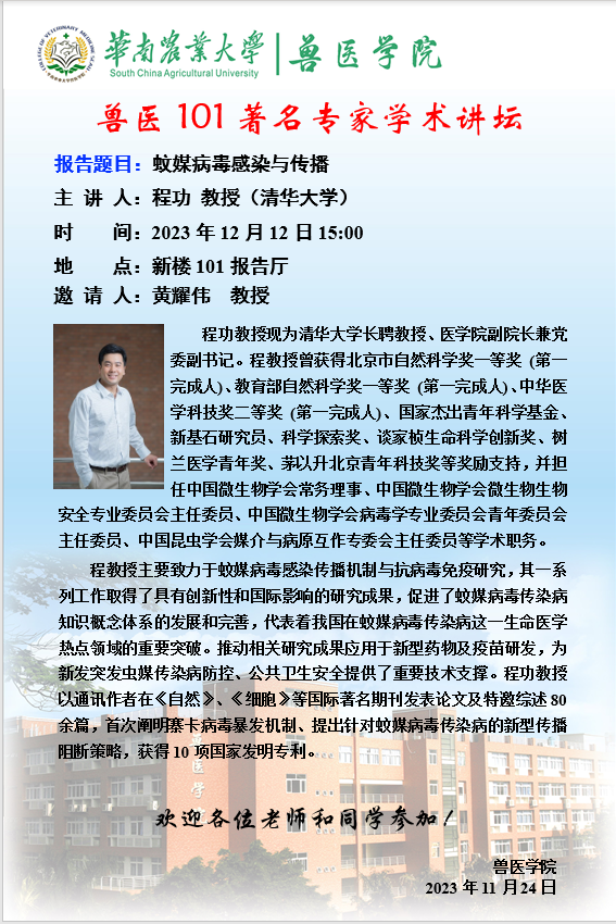 兽医101著名专家学术讲坛--蚊媒病毒感染与传播