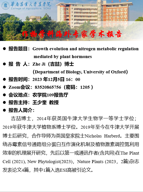 作物学科海外专家学术报告--Growth evolution and nitrogen metabolic regulation mediated by plant hormones