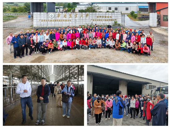 在清远市佛冈区,老同志们参观了我校实习基地“广东华农大新龙畜牧股份有限公司奶牛场,了解公司的生产经营情况,对“华农酸奶”的原料来源有了更直观的认识,对学校品牌更感自豪。