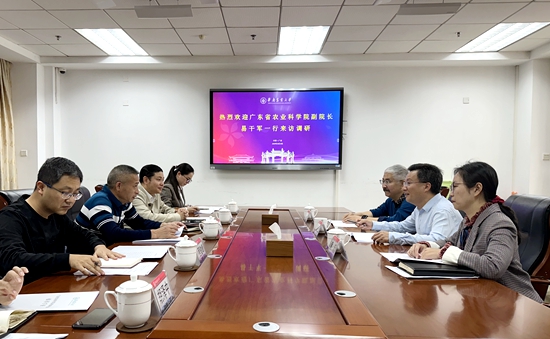 12月14日,广东省农业科学院副院长易干军一行来校交流。我校副校长温小波接待来宾并在行政楼六楼中会议室召开座谈会。