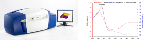 圆二色光谱(CD)是表征具有手性结构的分子的空间构象的一种有效的光谱技术,广泛用于表征生物大分子(蛋白质、核酸、DNA、多肽、疫苗等)的二级结构及三级结构、有机小分子化合物的构型构象、聚合物高分子材料、超分子等的手性立体结构以及分子的构象变化和分子间的相互作用等,也广泛应用于药物(包括天然产物药物、有机合成药物)研发、药物筛选等应用领域,如生物大分子药物的高级结构HOS(Higher Order Structure)研究与比对,生物仿制药(Biosimilar)的结构相似性研究,以满足药物审批研究监管机构(如FDA、EMA、CFDA等)对新药申报中提报相关结构数据的要求。在研究分子的空间结构、结构与功能、分子间相互作用、大分子的热稳定性、生物大分子的高级结构相似性比对等方面应用广泛,发挥着不可替代的重要作用。