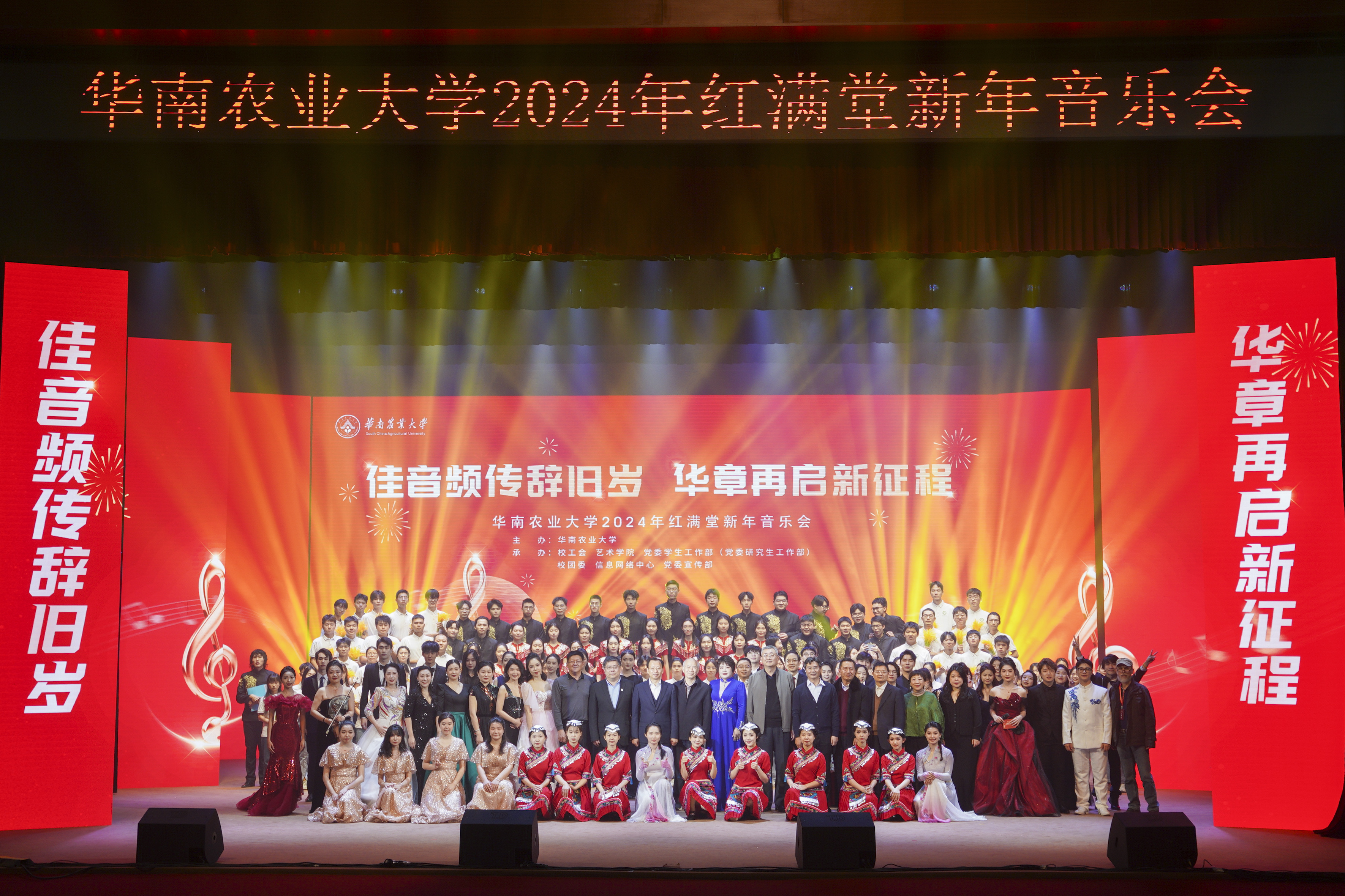 12月28日晚,丁颖礼堂内灯光璀璨,管弦齐鸣,华南农业大学2024年红满堂新年音乐会如期奏响。校党委书记李凤亮、校长薛红卫、中国科学院院士刘耀光、学校领导班子成员同师生代表1000余人欢聚一堂,共享视听盛宴。