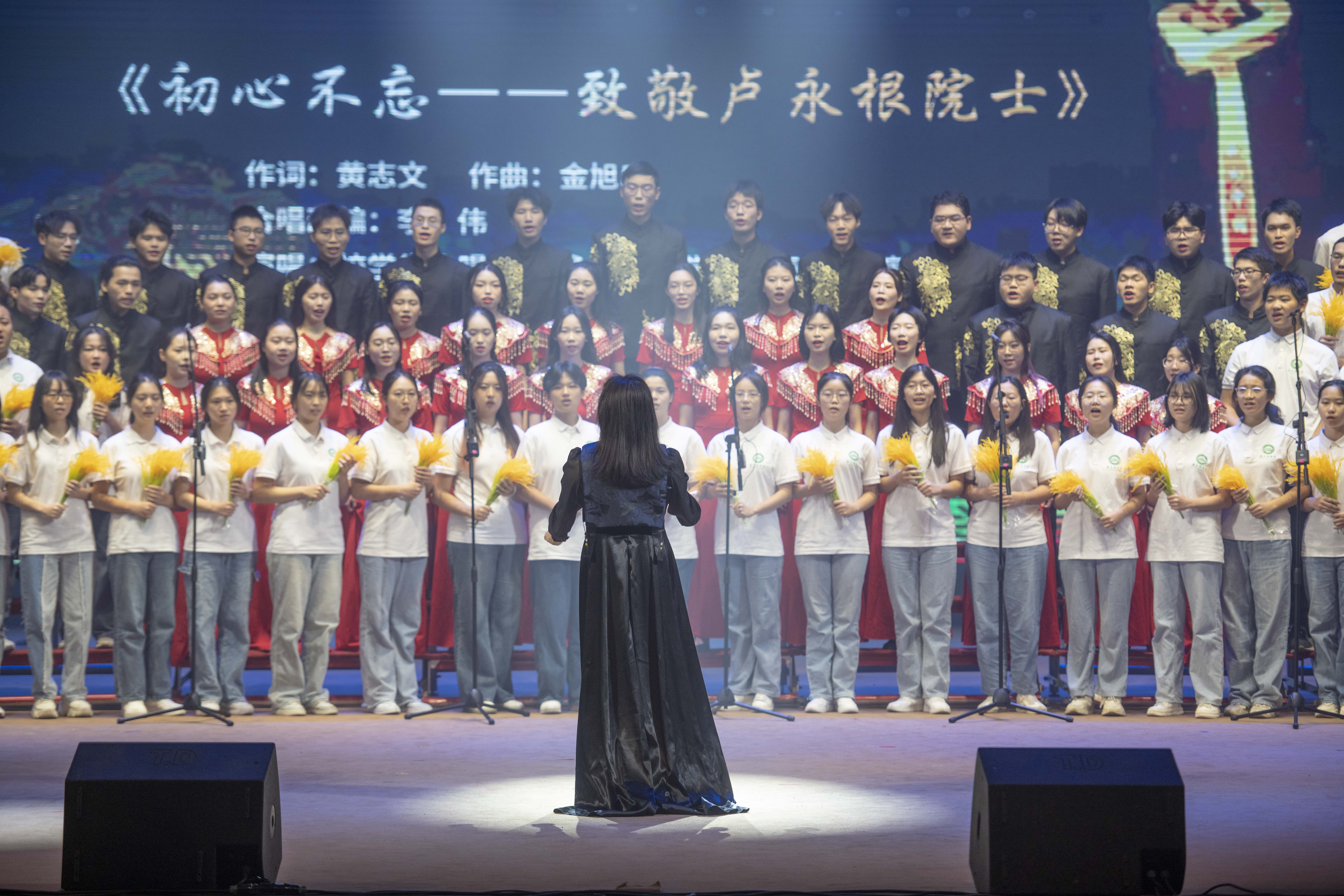 音乐会的最后,卢永根书院学生代表和校学生合唱团共同演唱歌曲《初心不忘——致敬卢永根院士》,缅怀“全国优秀共产党员”、华南农业大学原校长、卢永根院士,讴歌布衣院士一心向党、一生爱国、一身正气、一世恭俭的可贵精神和高尚情操。热情澎湃的歌声,同频共振的情感,点燃了全场氛围。