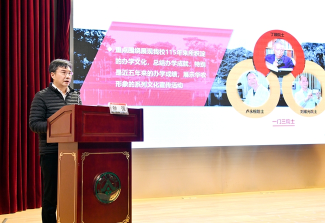 校庆工作办公室主任、副校长钟强介绍工作方案
