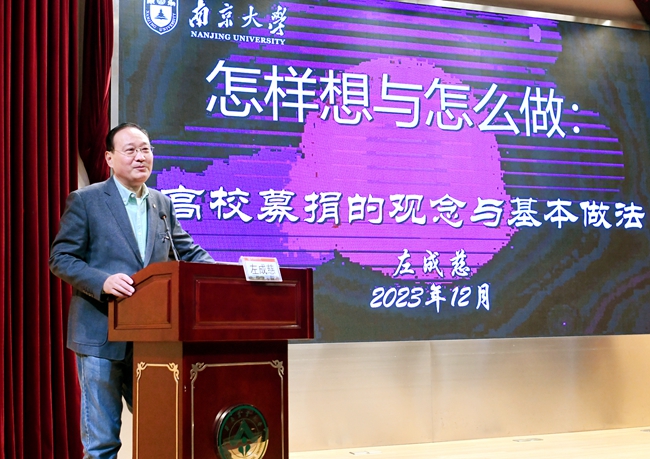 南京大学教授左成慈围绕“高校募捐的观念与基本做法”作了精彩报告和经验分享。他结合具体案例,深入分析了做好高校募捐工作的基本原则和工作方法。