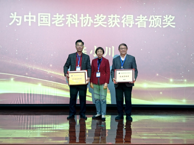 会议举行了颁奖仪式。华南农业大学离退休教职工协会获颁2023年中国老科学技术工作者协会先进集体奖,骆世明教授获颁2023年中国老科学技术工作者协会奖。
