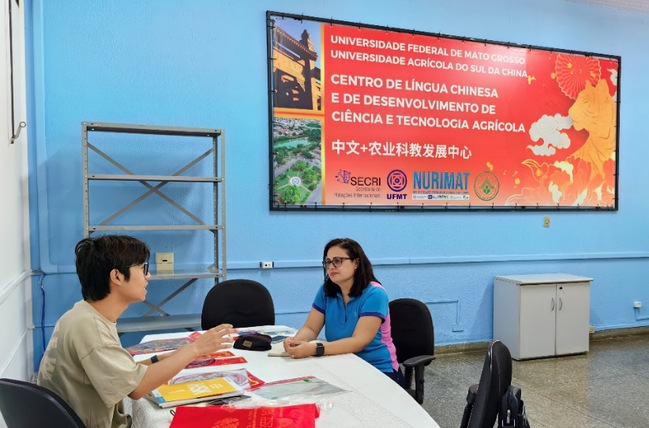 在教育部中外语言交流合作中心的支持下,2022年6月,我校与巴西马托格罗索联邦大学签约共建“中文+农业科教发展中心”。签约一年多以来,双方实现语言师资共享,首位中文志愿者和中方主任相继到岗。目前,中心已制定了2024春季的汉语课程招生计划,将在此前汉语课程基础上,开设5个汉语教学班级,这是首次在该州开设汉语课程。中心通过组织“中文+农业文化”研修班、国际中文日等活动,探索开发特色“中文+农业”课程,传播中华优秀传统文化,并受邀在2023年世界中文大会上介绍中心做法和经验。