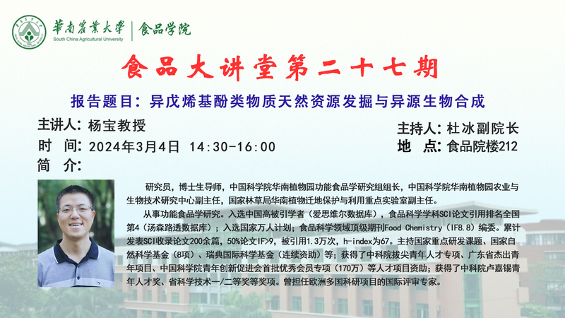食品大讲堂第二十七期:异戊烯基酚类物质天然资源发掘与异源生物合成