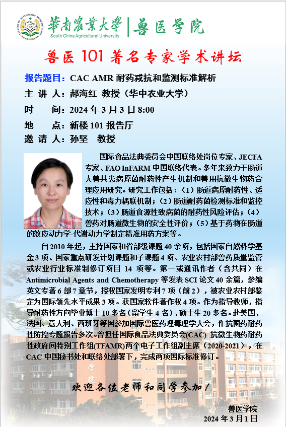 兽医101著名专家学术讲坛--CACAMR 耐药减抗和监测标准解析