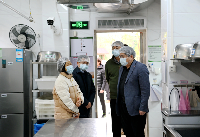 检查过程中,薛红卫对食堂工作人员恪守岗位职责、辛勤守护师生饮食健康所付出的辛劳表示感谢,并充分肯定了食堂在餐饮服务多元化、后厨管理智慧化系统建设等方面做出的积极探索。他强调,食品安全关系着师生的身体健康,也是学校“双一流”建设最重要的民生保障之一,各相关部门要紧盯一日三餐各个环节,严格做好安全监管,守护师生“舌尖上的安全”;要在确保安全第一的前提下,不断推动餐饮服务的多元化发展、增强校园饮食文化内涵,更好满足师生对安全营养健康食品的新需求。