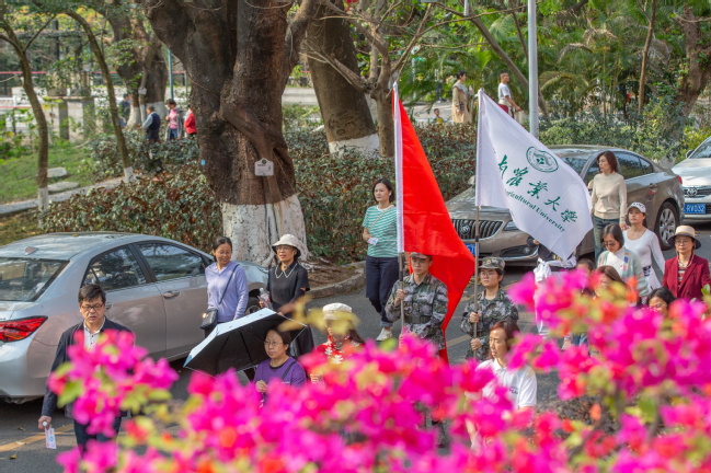 本次活动以学校综合体育馆为起点,途径田家炳训练馆、院士广场、音乐楼、丁颖雕像、竹铭草海、湿地公园等经典校园文化点,最终回到综合体育馆,全程约3.8公里。