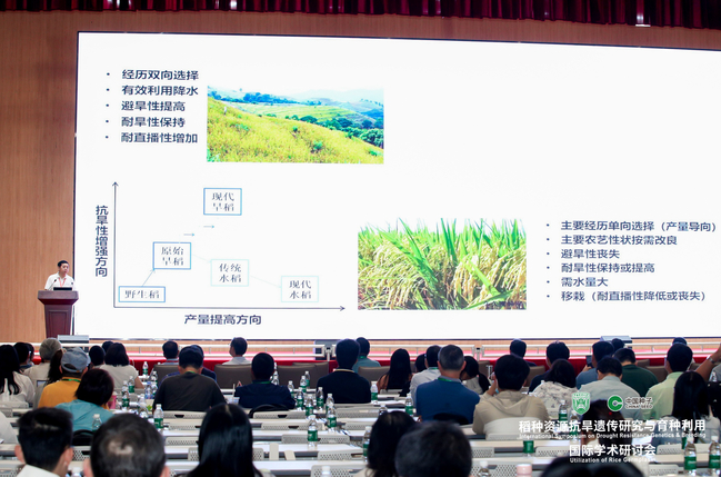 会上,罗利军围绕“节水抗旱稻的理论与实践”作主题报告,介绍了团队在节水抗旱稻理论研究、品种选育和产业应用等方面的进展,向广大专家展示了节水抗旱稻在节水抗旱、养分高效、资源节约、环境友好方面的优势。节水抗旱稻节水抗旱、适合旱作,通常采用“旱直播旱管”的绿色栽培模式,可节水50%,节肥30%,大幅减少面源污染和温室气体排放。同时,节水抗旱稻“旱直播旱管”栽培技术适应多种种植场景,既可以在水田实行“旱直播旱管”种植,又可在“山改田”“撂荒地”与低畦易涝旱地种植,极大拓展了节水抗旱稻的种植空间,相关研究获2013年国家发明二等奖和2020年国家科技进步一等奖,为碳中和背景下提升粮食产量、保障国家粮食安全提供了一种切实有效的解决方案。