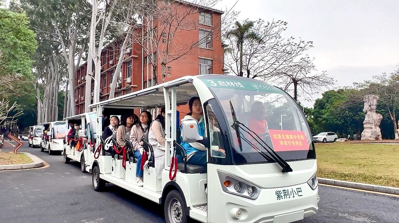 本次活动以“紫荆有约 相聚华农”为主题,精心策划了两条涵盖校内人文景观与自然景色的踏青路线,并组织了“紫荆小巴”观光专线游览车,搭乘老师们领略“五湖四海一片林”的校园风光。参观的老师们表示,华农是读书求学的好地方,这次活动让大家认识了“不一样的华农”,沉浸式感受了学校的独特魅力,希望有更多的学子能够圆梦华农,在华农成长成才。