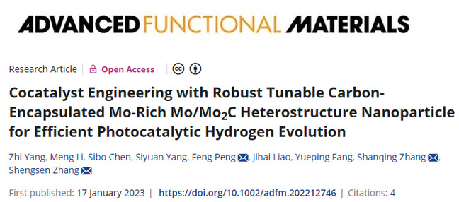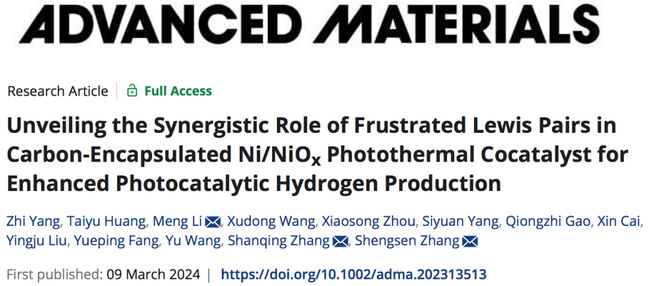 近日,我校材料与能源学院绿色能源材料团队张声森/方岳平教授联合广东工业大学张山青教授团队在光催化制氢领域取得重要进展,两项研究成果以Research Article形式分别发表在国际知名学术期刊Advanced Materials(中科院一区Top,影响因子29.4)、Advanced Functional Materials (中科院一区Top,影响因子19.0)。