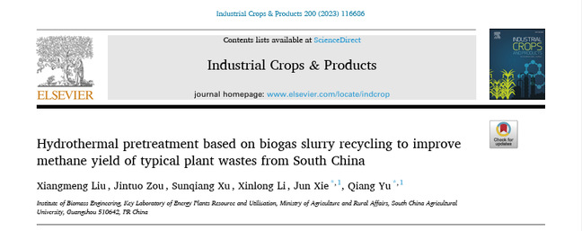研究团队还评估了华南地区多种特色种养废弃物的厌氧消化性能,研究了甲烷产量与原料特性之间的相关性,建立了用于预测甲烷产量的人工神经网络模型。为解决厌氧消化后沼液消解利用的问题,发明了基于沼液回用的水热预处理(HPBSR)技术,可显著提高废弃物的厌氧消化效率及沼气产量。此研究成果发表在Industrial Crops and Products (农林科学一区,Top,影响因子5.9)上,题目为“Hydrothermal pretreatment based on biogas slurry recycling to improve methane yield of typical plant wastes from South China”,文章第一作者为硕士生刘香檬,通讯作者为余强研究员和谢君教授。