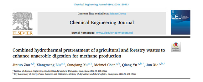 近日,我校生物质工程研究院谢君教授团队在种养废弃物高效水热预处理和生物质厌氧转化方面取得新研究进展,谢君教授及余强研究员两项研究成果发表在国际知名学术期刊上,相关成果同时申请发明专利多项。