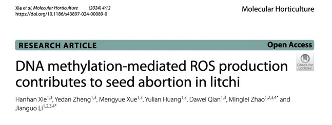 上述论文李建国研究员和赵明磊副研究员为通讯作者,已毕业的谢涵涵博士为第一作者。研究得到岭南现代农业科学与技术广东省实验室和国家现代荔枝龙眼产业技术体系项目资助。