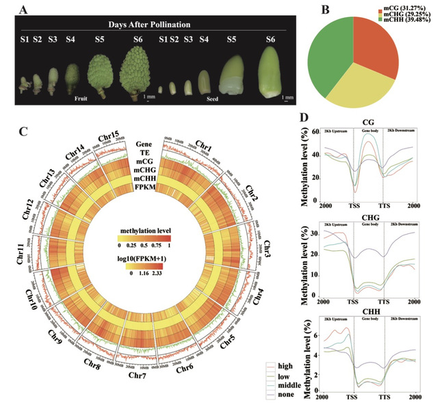 图1. 大核品种‘怀枝’荔枝种子发育过程中全基因组DNA甲基化修饰特征
