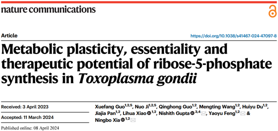我校新发和人兽共患病研究中心肖立华和冯耀宇教授团队在人兽共患病原体弓形虫核糖代谢研究中获得重要突破,成果近日在线发表于Nature Communications。团队成员近年来围绕弓形虫感染与致病机制,从代谢角度揭示病原适应复杂寄生环境的机理,为弓形虫病的药物和疫苗研发提供靶点和理论支撑,相继在mBio(Xia, et al. 2019)、PLoS Pathogens(Xia, et al. 2022)等期刊发表论文。