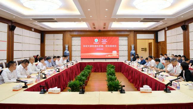 捐赠仪式结束后,薛红卫与学校派驻温氏集团的老师、校友进行了座谈。薛红卫介绍了学校“双一流”建设近况和115周年校庆筹备情况,代表学校对长期以来情系华农、关心支持华农建设发展的老师和校友们表达了衷心感谢与祝福:“希望各位老师、校友能在校企合作的新征程上,为温氏集团发展成为‘千亿企业,百年温氏’的目标,华农建成农业特色世界一流大学的目标,积极贡献才智和汗水,一起创造新的辉煌事业!欢迎大家在校庆之际齐聚华农,共庆学校115周年华诞!”