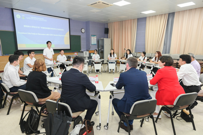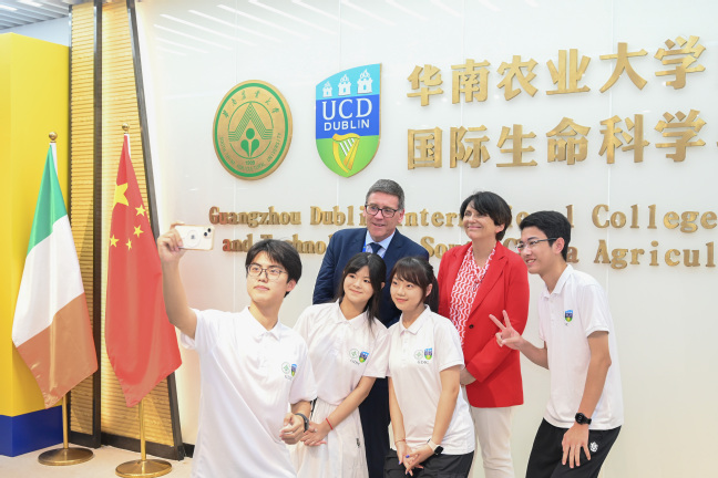 来访期间,Orla Feely 一行还访问了广州都柏林学院,实地参观学院办学场地和环境设施,并与师生代表交流。Orla Feely充分肯定了广州都柏林学院的办学成果。她表示,作为中爱跨国教育的典范,广州都柏林学院秉承优势互补、资源共享、互利共赢的理念,汇集了世界上两所领先大学的优势和强项,不断探索全球化时代需要的创新人才培养模式。四年来,都柏林大学与华南农业大学携手打造了全面的教育体验,广州都柏林学院逐步形成了融合、重构、创新的中外合作办学特色模式,在中爱双方教师的精心指导下,激发了学生们学习和创造、质疑和推理、创新和探索以及为社会做出贡献的愿望和能力,两校共同培养了一批优秀的学生,社会影响力不断提升。