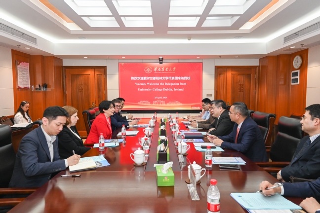 4月23日,爱尔兰都柏林大学(University College Dublin,简称UCD)校长Orla Feely教授率代表团一行5人访问我校。薛红卫校长会见了代表团一行。