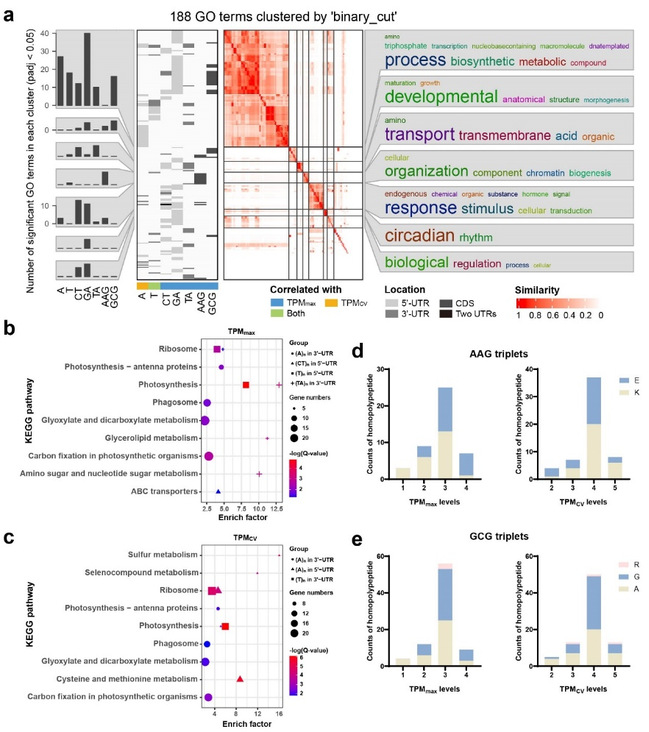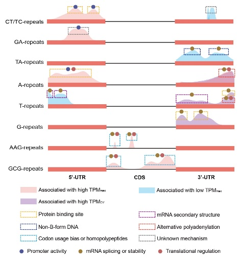 简单重复序列(SSR)在原核和真核生物的基因组广泛存在,能驱动物种快速发生遗传变异、基因表达进化和环境适应。位于基因内的SSR更是可被用作调节基因表达和生理代谢过程的“旋钮”,进而引发表型改变。可是,对于这些具基因表达调控功能的SSR(eSSR),它们的基序组成、拷贝数以及在基因中的分布式样对基因表达产生的效应,目前还所知较少。