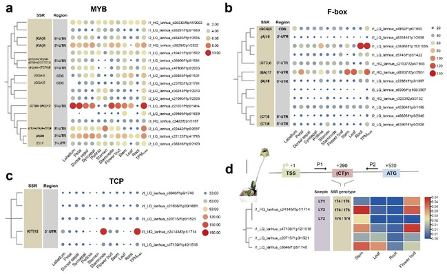 该论文对麻栗坡兜兰(Paphiopedilum malipoense)转录组的SSR进行了系统的统计基因组学分析,证实eSSR基序类型与基因表达水平存在关联,鉴定出9个表达调控基序(expMotif)和11个基序-转录区组合;发现基序类型-转录区组合是决定SSR所起表达调控作用的关键因素,并提出了解释eSSR作用机制的模型;同时,对eSSR分布与MYB、F-box和TCP家族旁系同源基因的表达水平的相关性也进行了实验验证,结果表明eSSR重复单位的突变可导致所在基因的表达发生显著改变。本研究为认识重复序列对兰科植物基因组的适应性进化提供了新见解,所建立起的eSSR高通量统计基因组学分析框架也可用于其他植物的研究。