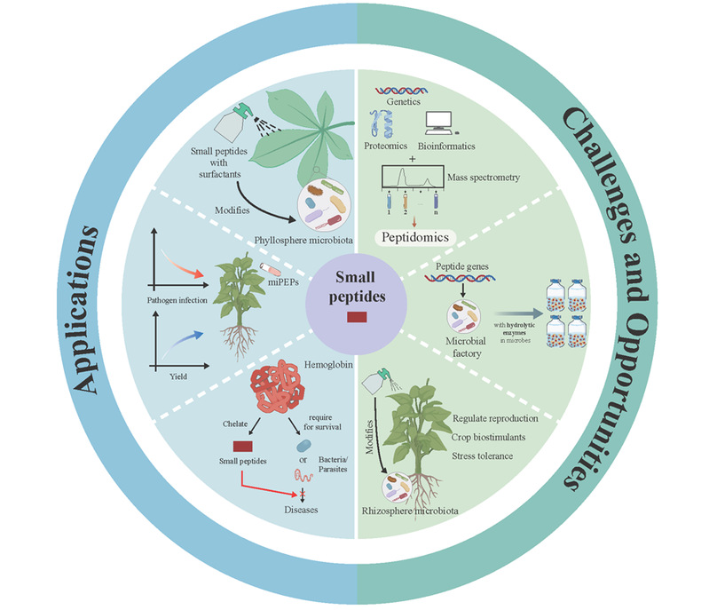 图3以小肽为基础的肽工程的实际应用及肽工程面临的机遇和挑战。