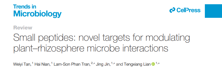 近日,我校农学院青年教师连腾祥副教授、金晶副教授联合德克萨斯理工大学Lam‑Son Phan Tran教授,在Cell Press细胞出版社旗下期刊Trends in Microbiology(中科院1区,影响因子15.9)在线发表了题为“Small peptides: novel targets for modulating plant‒rhizosphere microbe interactions.”的综述论文。