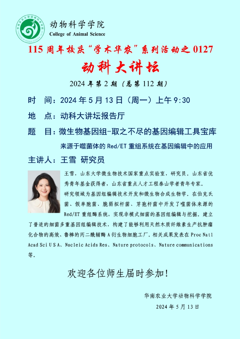 115周年校庆“学术华农”系列活动之0127:动科大讲坛:微生物基因组-取之不尽的基因编辑工具宝库