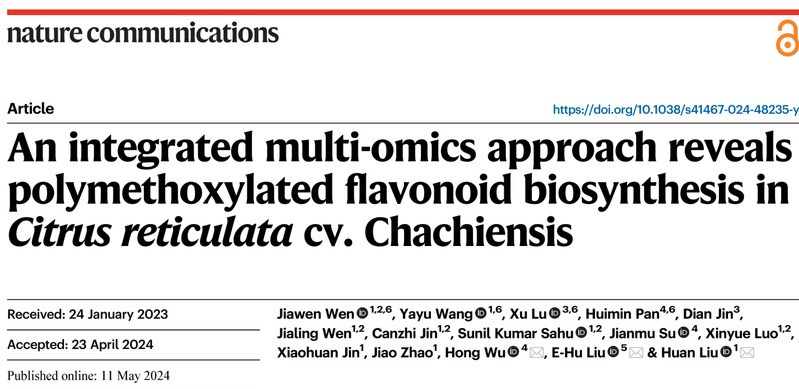 近日,我校药用植物研究中心联合华大生命科学研究院、中国药科大学、南京中医药大学,通过多组学技术破译了茶枝柑基因组的遗传图谱,揭示了多甲氧黄酮合成的潜在通路以及基因调控网络。研究成果在国际学术期刊《自然通讯》(影响因子16.6)上发表。
