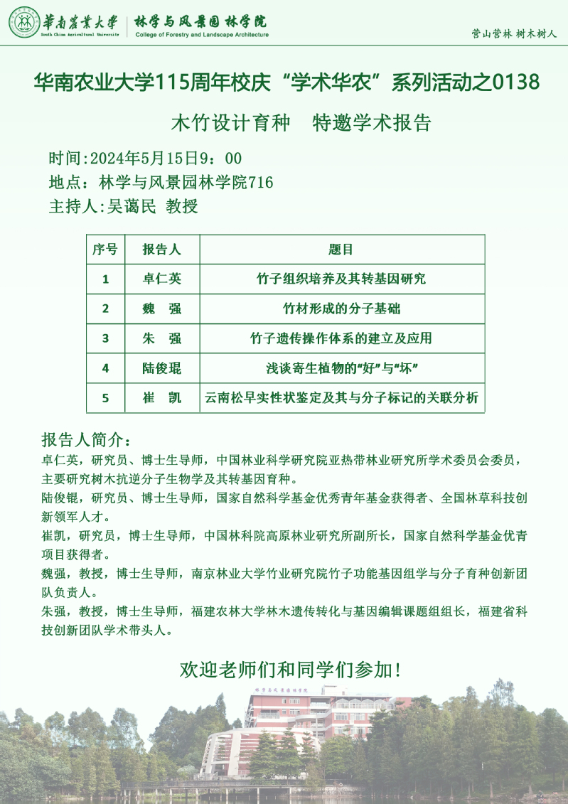 115周年校庆“学术华农”系列活动之0138:木竹设计育种特邀学术报告