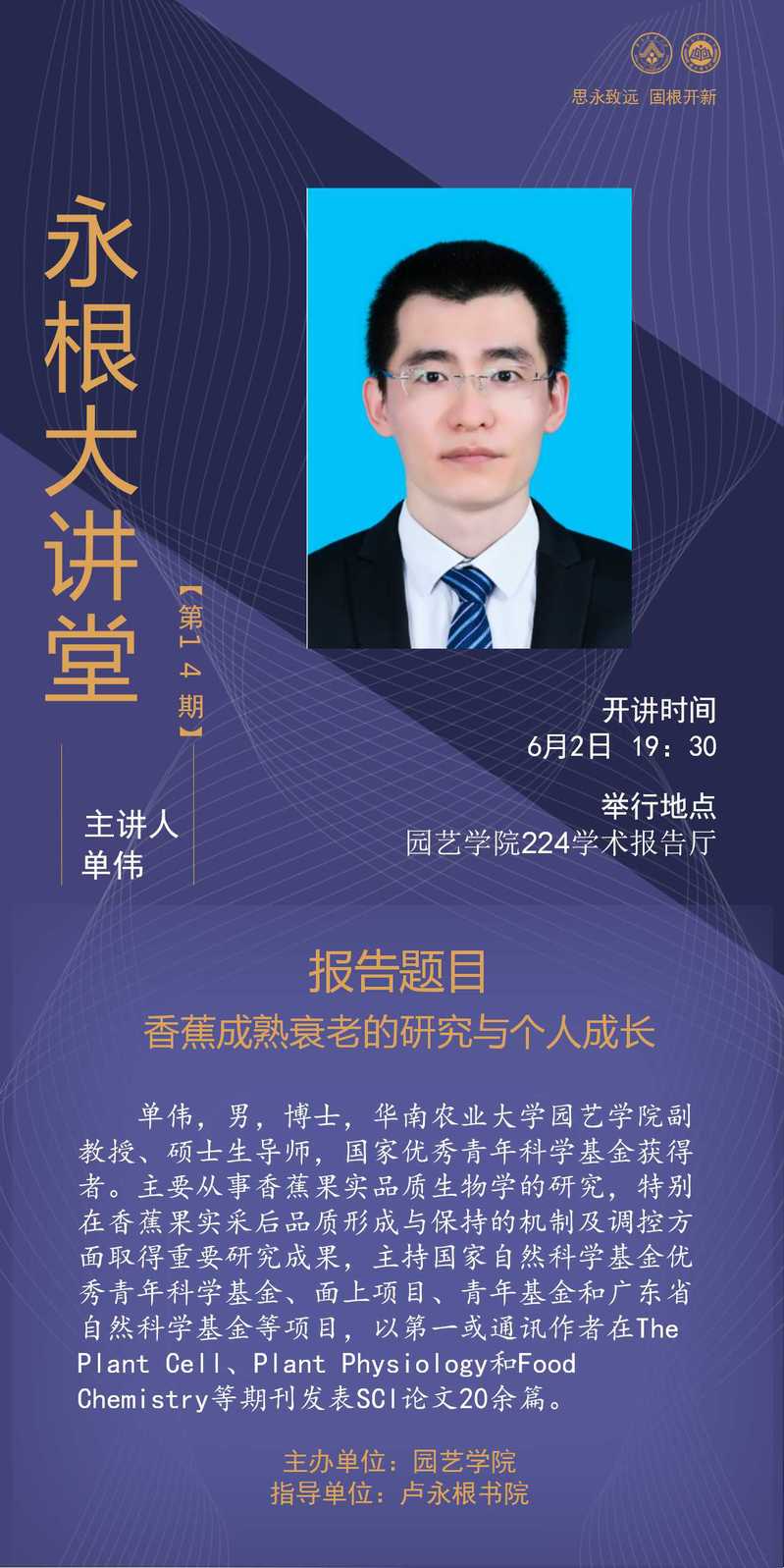 115周年校庆“学术华农”系列活动之0148:永根大讲堂第十四期:香蕉成熟衰老的研究与个人成长