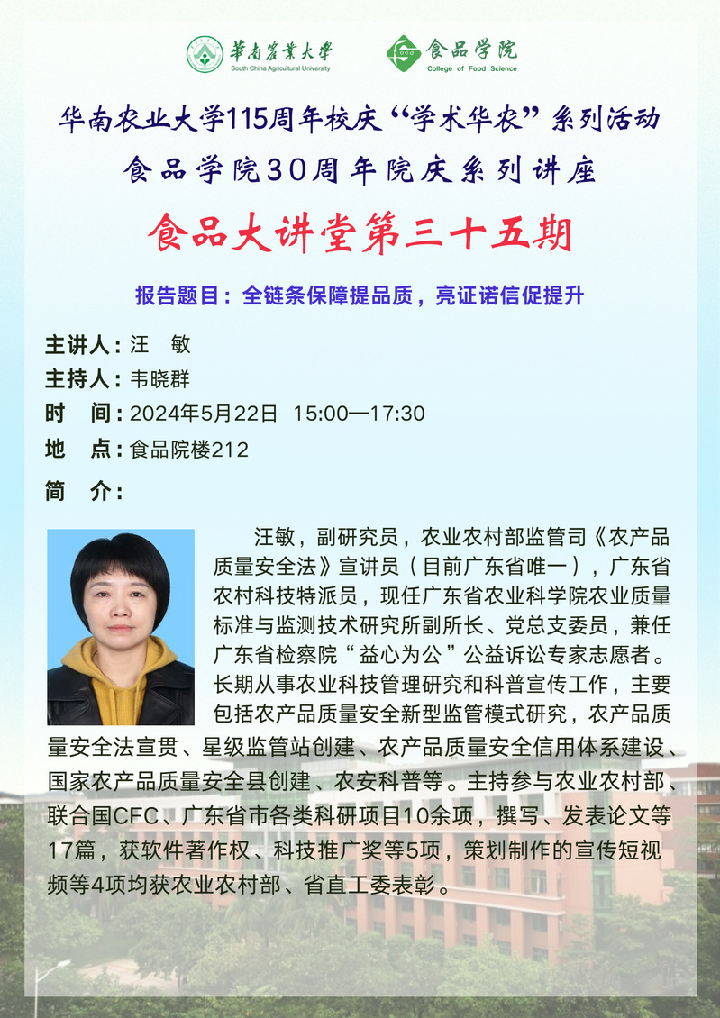 115周年校庆“学术华农”系列活动之0150:食品大讲堂第三十五期