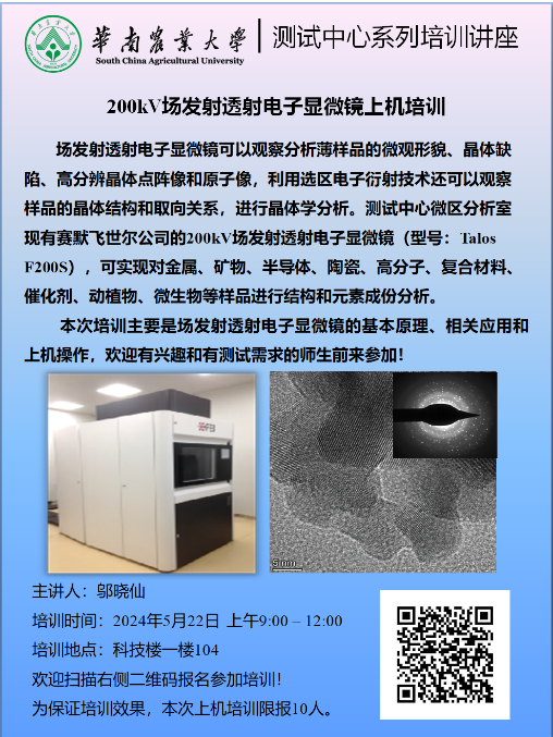 115周年校庆“学术华农”系列活动之0161:测试中心系列培训讲座:200kV场发射透射电子显微镜上机培训