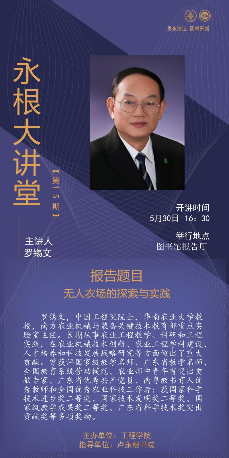 115周年校庆“学术华农”系列活动之0164:永根大讲堂第十五期:无人农场的探索与实践